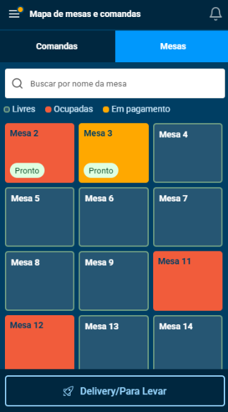 Agora, o App Garçom permite acompanhar o andamento dos pedidos em tempo real. Quando a cozinha finaliza o preparo, o garçom visualiza uma tag na mesa ou comanda dentro da aplicação.