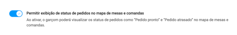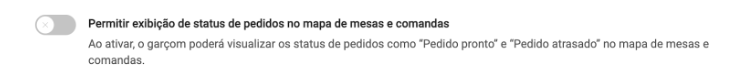 Como faço para desativar o status do pedido no app do garçom?