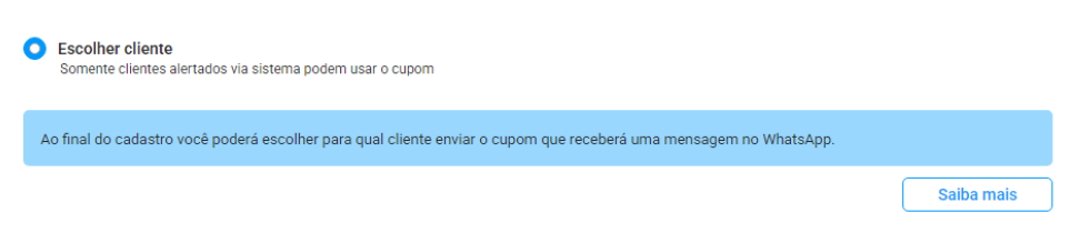 Como funciona: ao selecionar a opção “Escolher cliente”, você pode enviar o cupom individualmente para clientes selecionados.