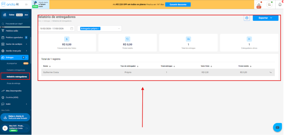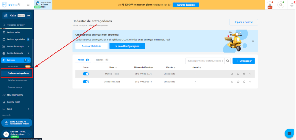 - Acessar o “Relatório de entregadores”