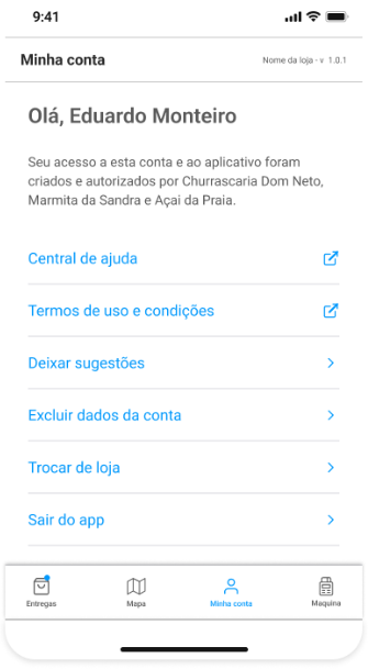 - Se o entregador estiver cadastrado em apenas um estabelecimento, o aplicativo iniciará automaticamente, sem necessidade de seleção