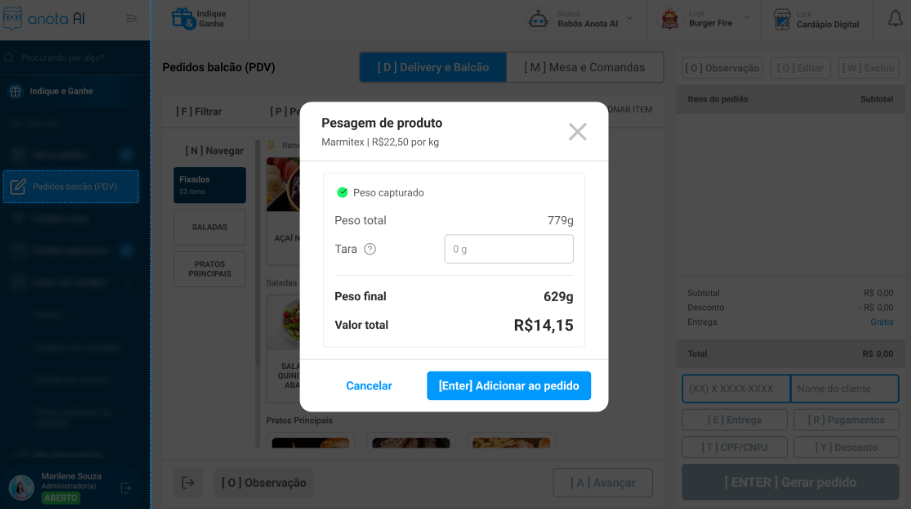- O atendente pesa o produto na balança integrada