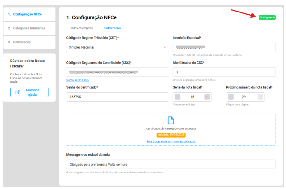 Após seguir as orientações, e com o certificado em mãos, você poderá finalizar o cadastro fiscal para a emissão de NFC-e.