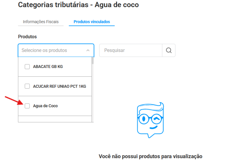 Dica: É obrigatório escolher uma categoria tributária para cada produto que será incluído na NFC-e.