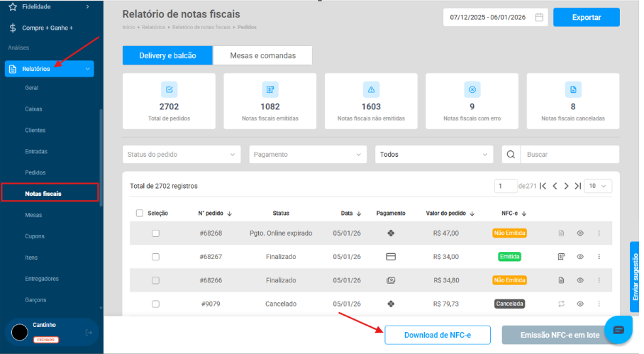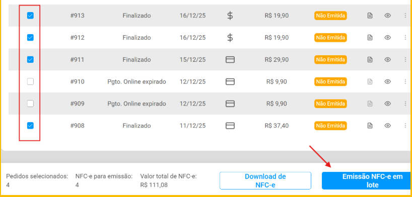 Quando há NFC-e emitida: