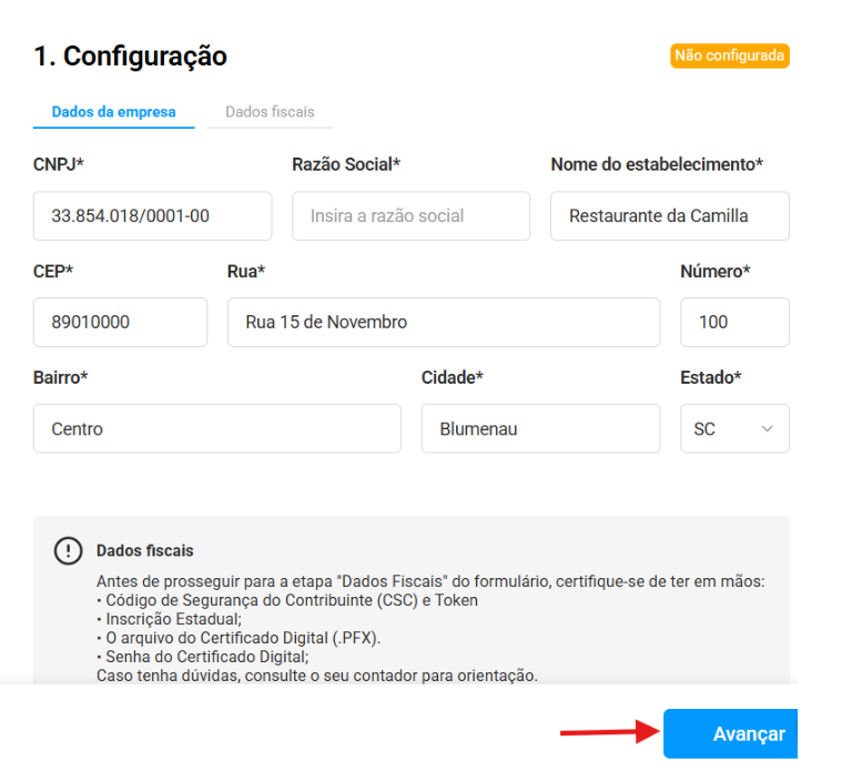 Após seguir as orientações, e com o certificado em mãos, você poderá finalizar o cadastro fiscal para a emissão de NFC-e.