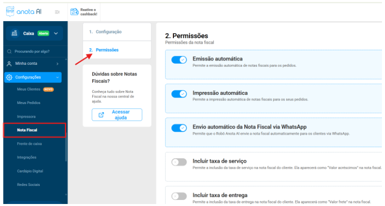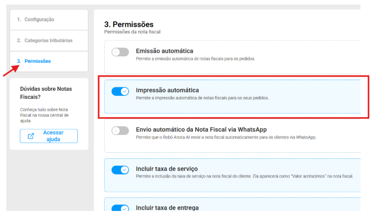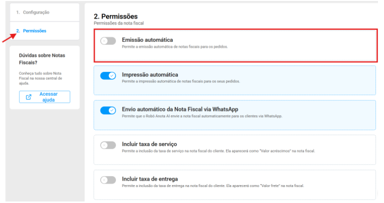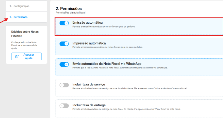 - Ative o modo de emissão automática na página de configuração de Nota Fiscal.