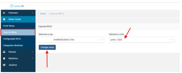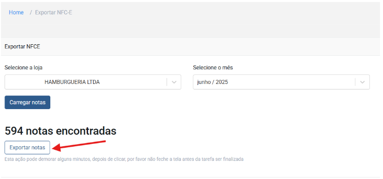 Atenção: Não é possível exportar XML ou relatórios de notas do mês vigente porque as notas ainda podem sofrer alterações até que o mês seja fechado ou até que todas as notas sejam emitidas e autorizadas pela SEFAZ. Isso garante que você não envie arquivos incompletos ou com informações incorretas para a contabilidade.