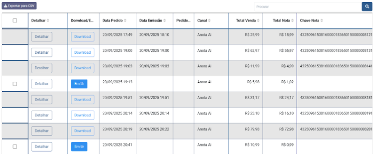 Clique em “Exportar para CSV” para baixar uma planilha com as notas filtradas, facilitando conferências e controles internos.