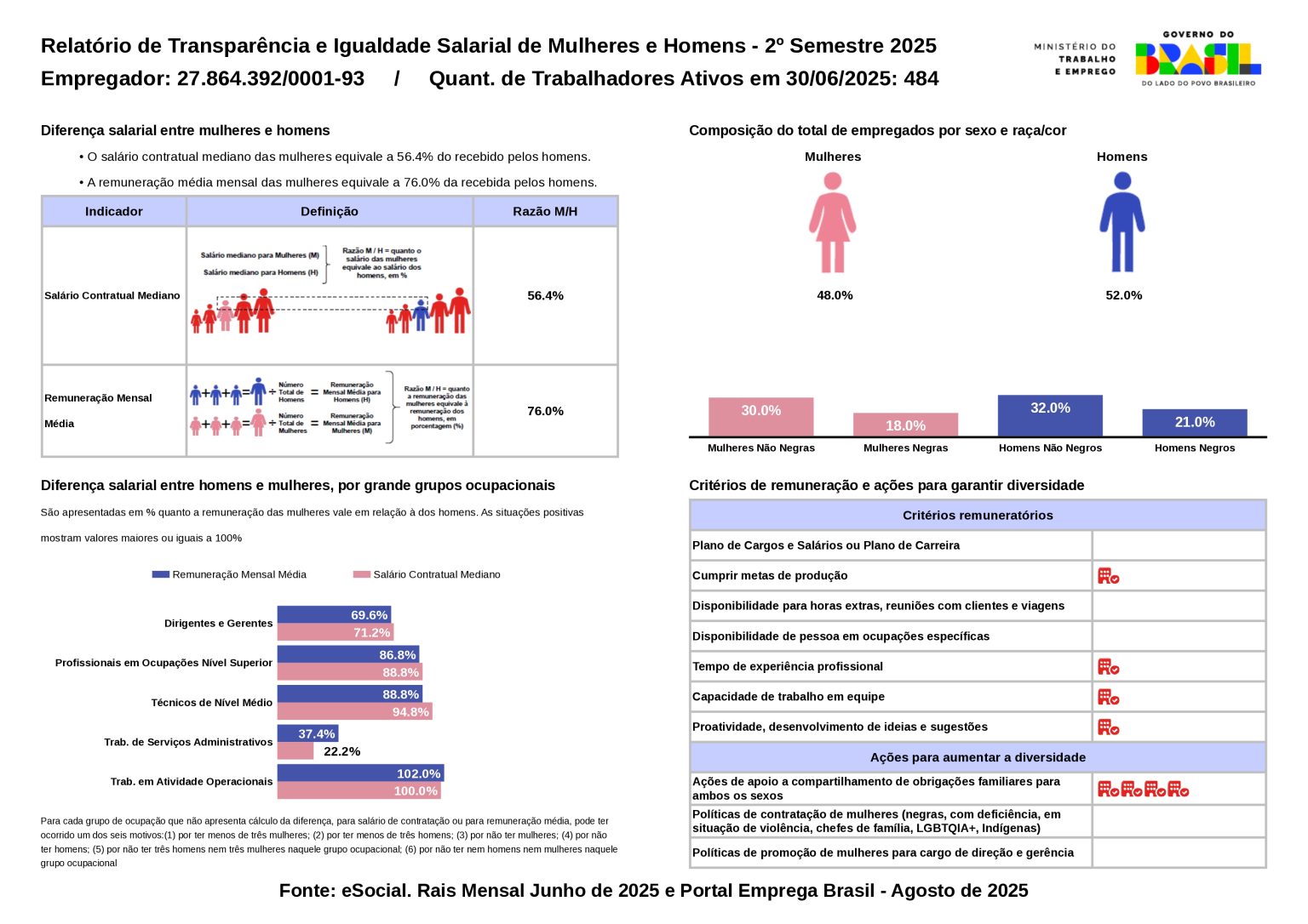 Cabe esclarecer que esse relatório apresenta informações consolidadas pelo Ministério do Trabalho e Emprego (MTE) e foi elaborado levando em conta informações do e-Social com data base em 30 de Junho de 2025.